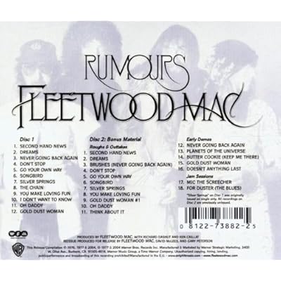 2004年發行的新版「Rumours」是兩張一套的CD,第一張是原專輯的11首歌加上Nicks主唱的"Silver Spring",該曲當年只發行單曲,收錄於"Go Your Own Way"的單曲B面。第二張收錄的18曲總總長超過60分鐘、全部是以前沒有對外發表過的歌曲版本。"Think About It"後來出現於Stevie Nicks 1981年發行的首張個人專輯「Bella Donna」之中;"Planets Of The Universe"到2001年Nicks才於專輯「Trouble In Shangri-La」中收錄,除這兩首外其餘的試聽帶如Christine的"Butter Cookie"、Buckingham的"Doesn’t Anything Last"還有"For Duster"都沒有完成正式作品。